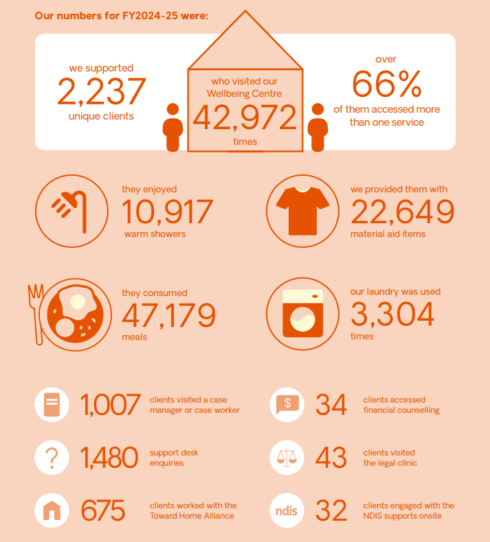 You have helped us support over 2500 people who have experienced or been at risk of homelessness. Together we can end homelessness.